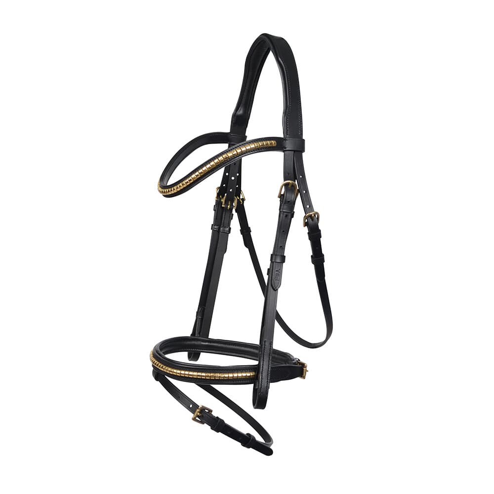 Tidlöst clincher-träns med ergonomiskt utformat nackstycke och aachennosgrimma.