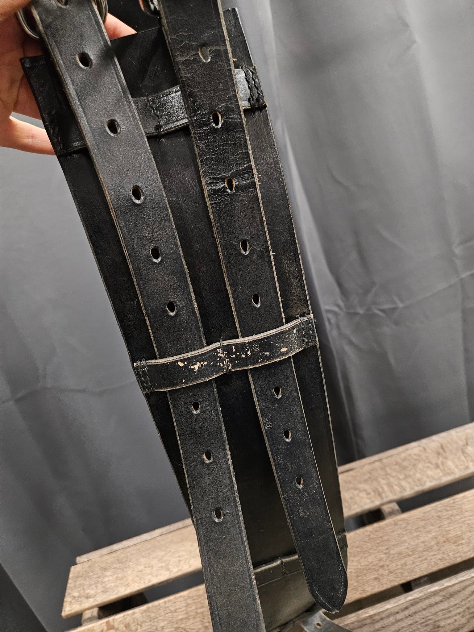 Använt skick, lite nött i färgen och skulle må bra av lite extra läderfett, men är absolut inte bortom räddning.