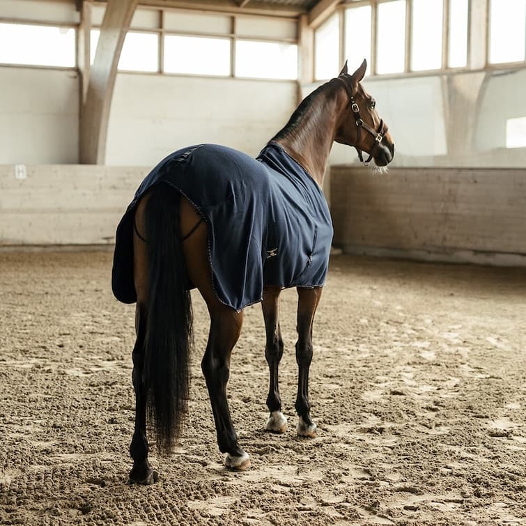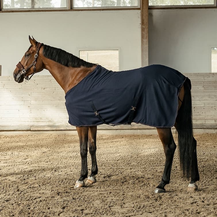 - Slät utsida, mjukt flossad fleece på insidan som transporterar bort fukten ifrån hästen och lägger det på utsidan av täcket.