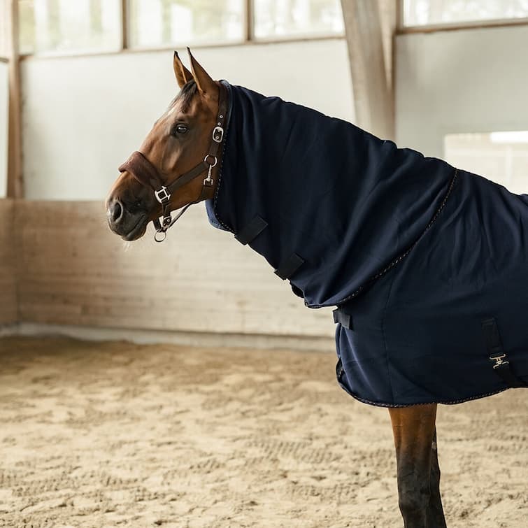 - Slät utsida, mjukt flossad fleece på insidan som transporterar bort fukten ifrån hästen och lägger det på utsidan av täcket.