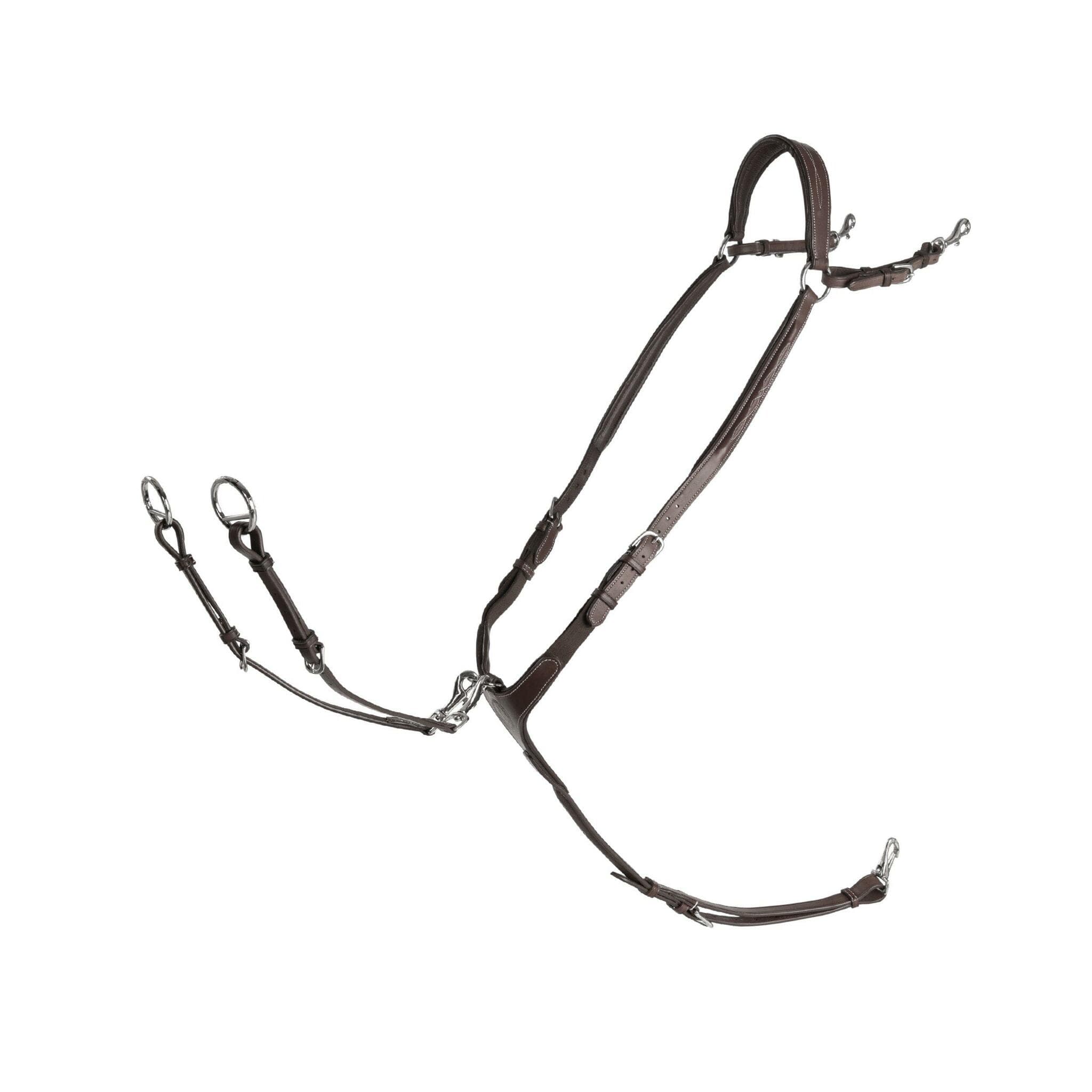 - Praktiska snabbhakar för sadelinfästningen och snaprings på martingalen.