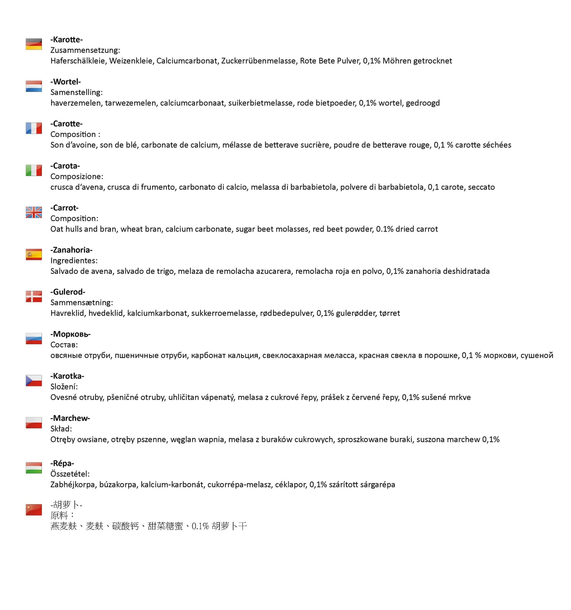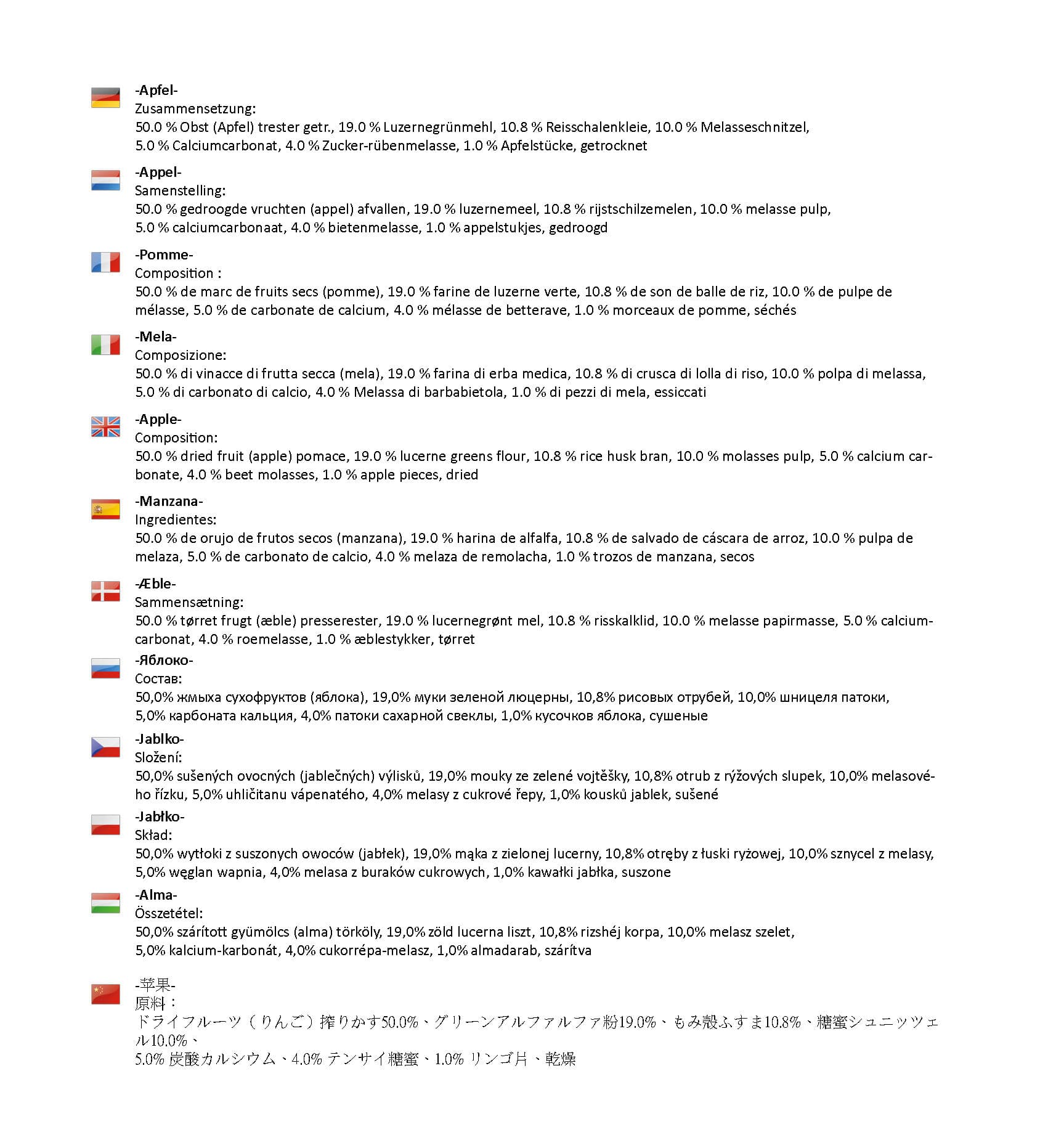 - för innehållsförteckning, se bilder för respektive smak