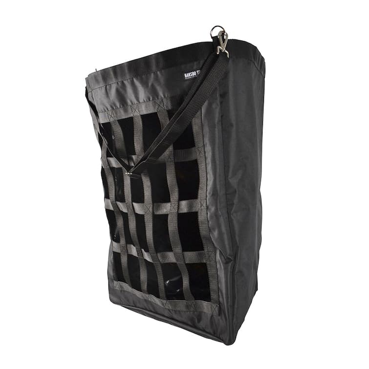 - Trekantig höpåse/ hösäck med slowfeed (9 x 6 cm) framsida för upphängning i hörn.