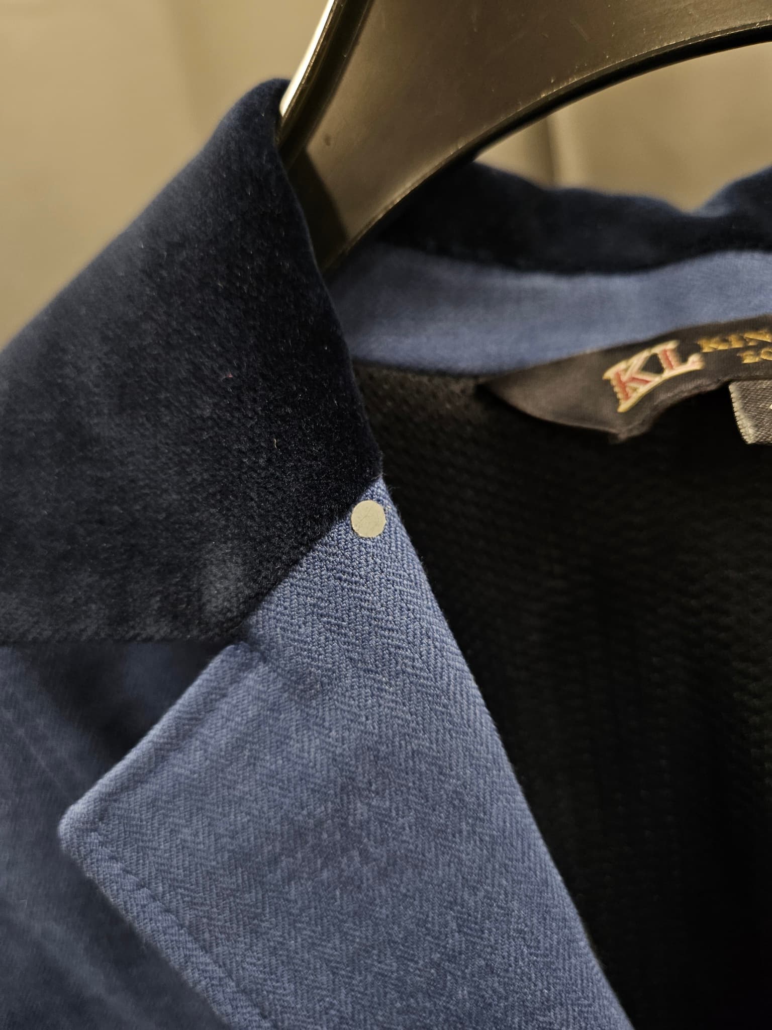 Kavajen har haft en liten blingsten vid kragen som fattas.