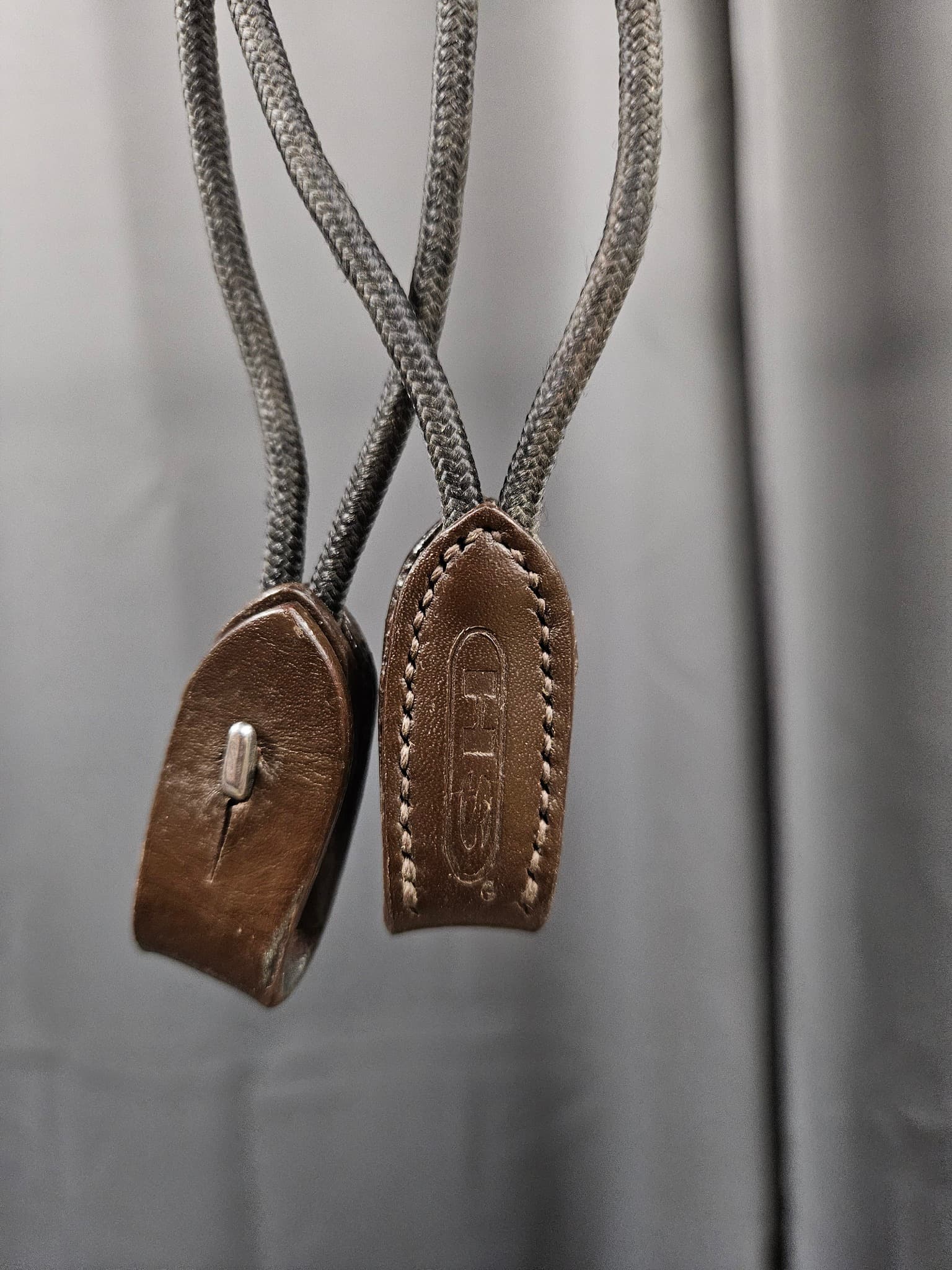 • Brunt läder och rep med rostfri fransk hake