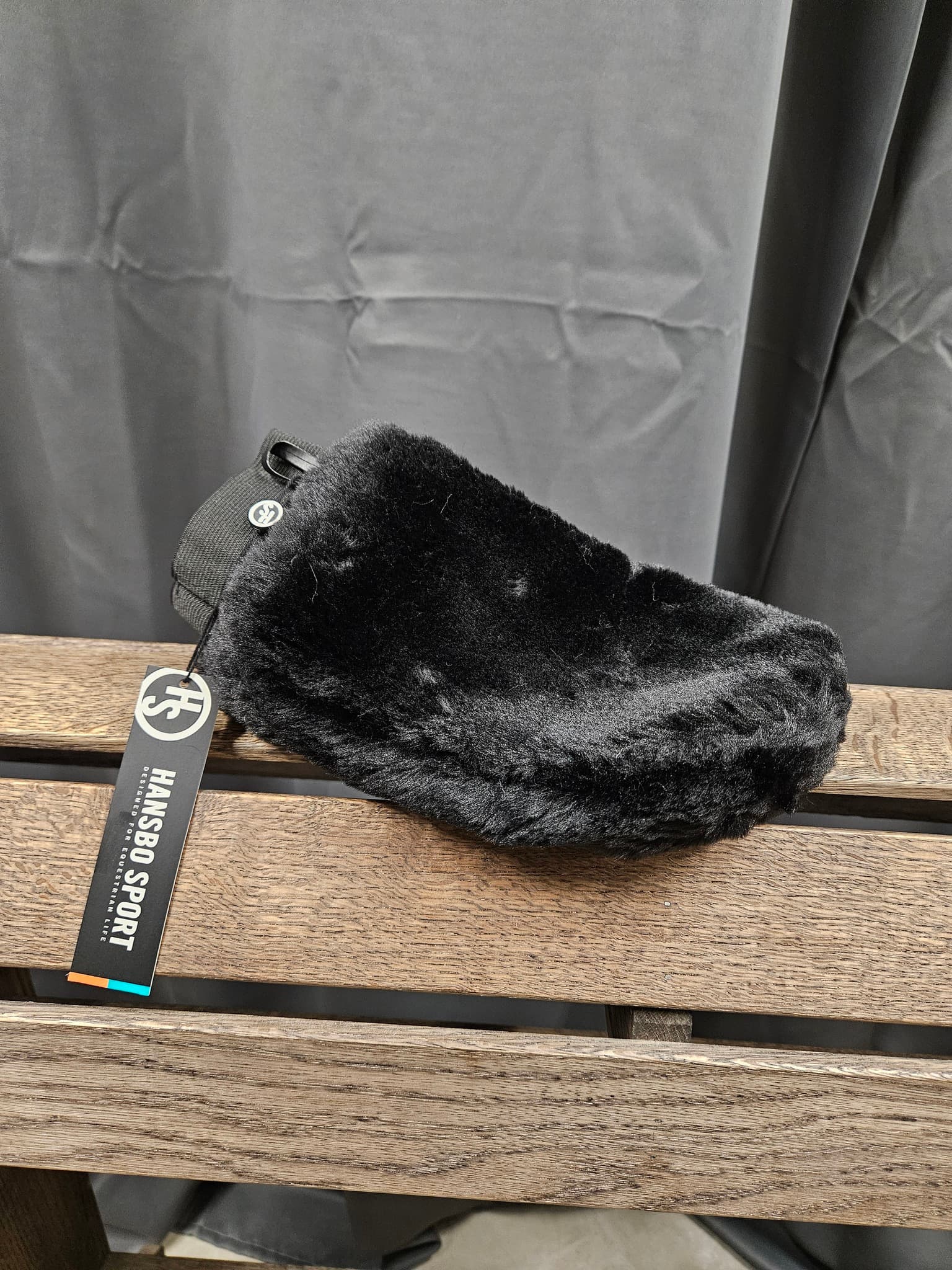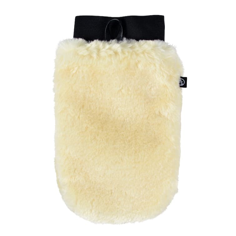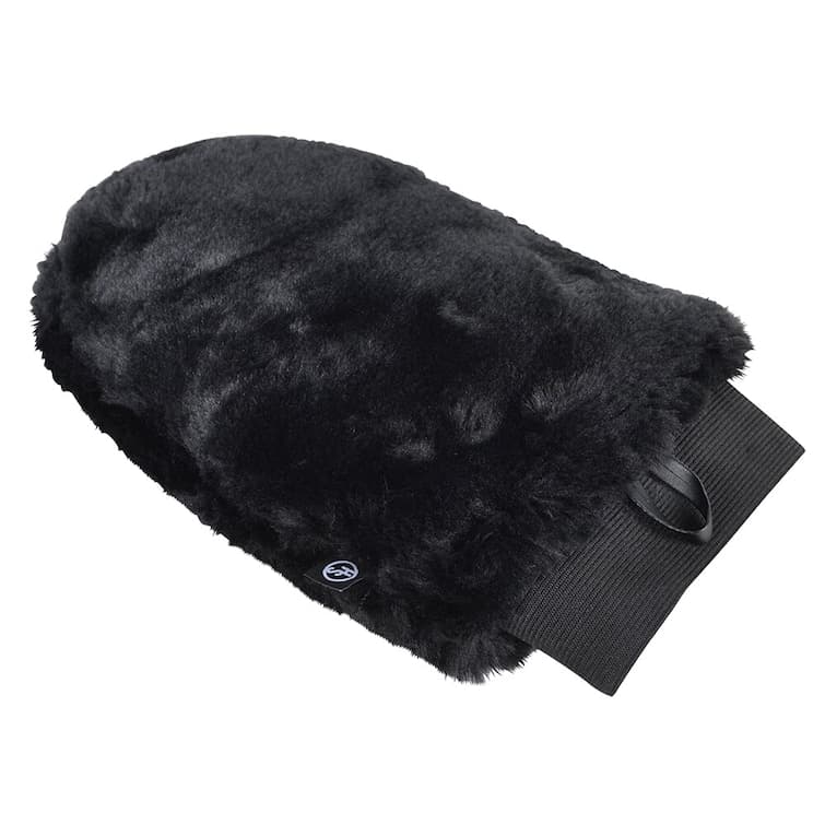- Otroligt mjuk dubbelsidig putsvante av artificiellt fårskinn, perfekt för att avlägsna damm från hästen och för att ge den sista finishen.