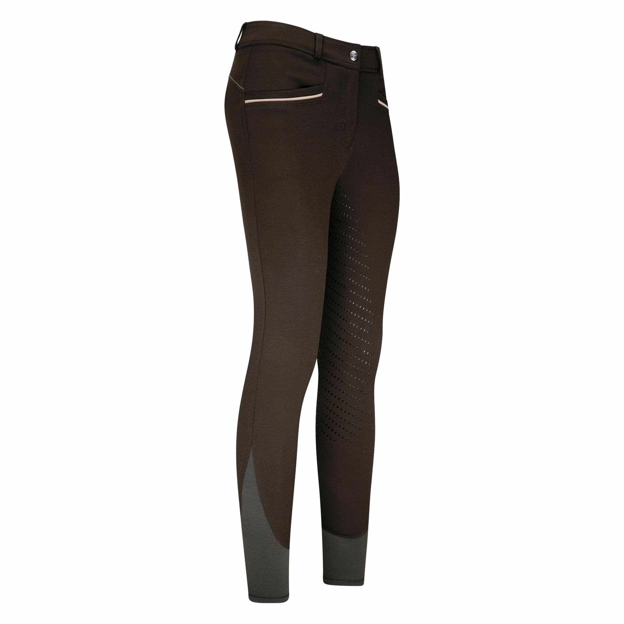 - Ridbyxor, ton-i-ton, med små visuella detaljer och klassiskt snitt med helskoning i silikon.