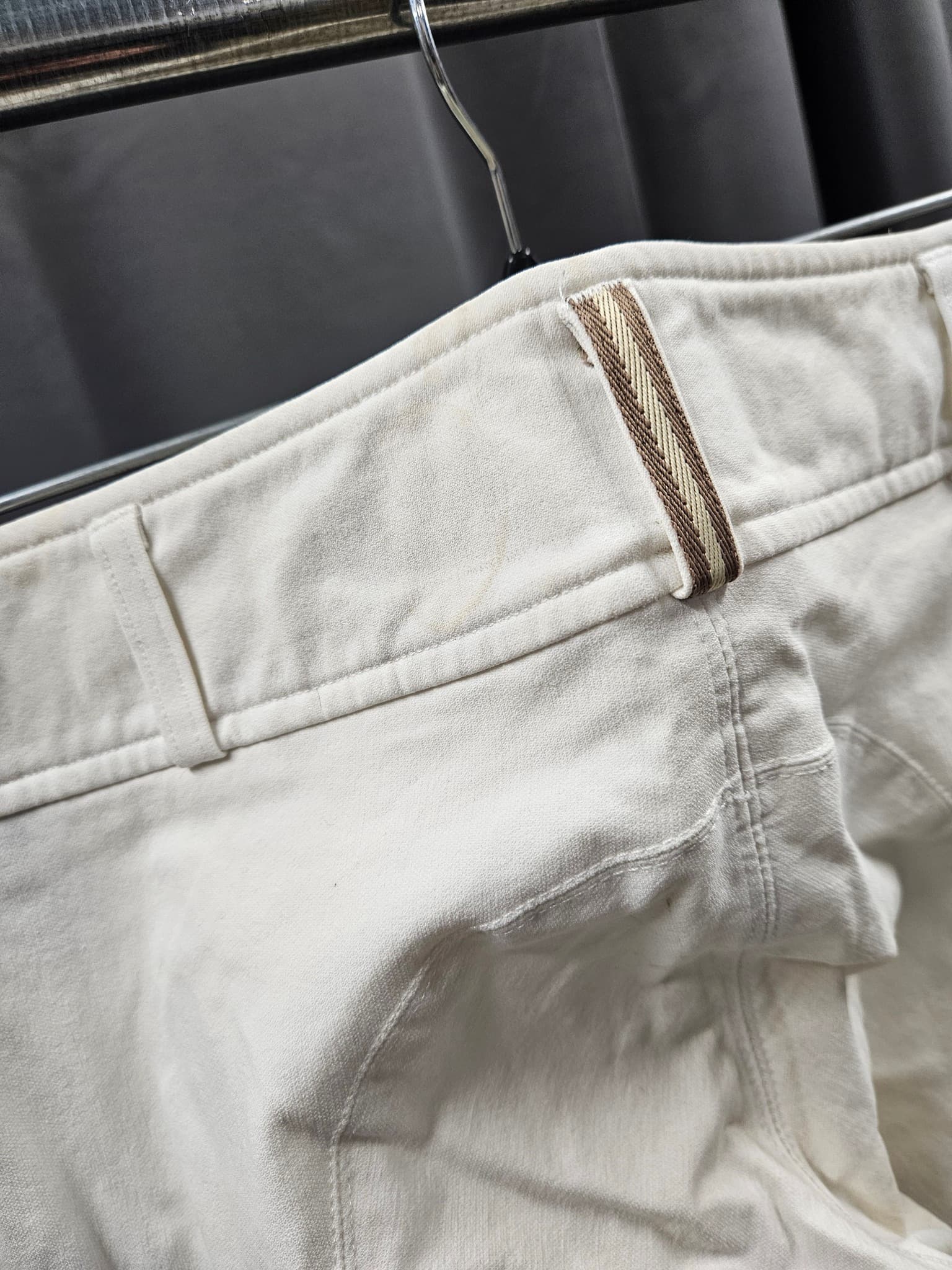 Har nyansskillnader efter sadeln, både vid knän och vid säte.