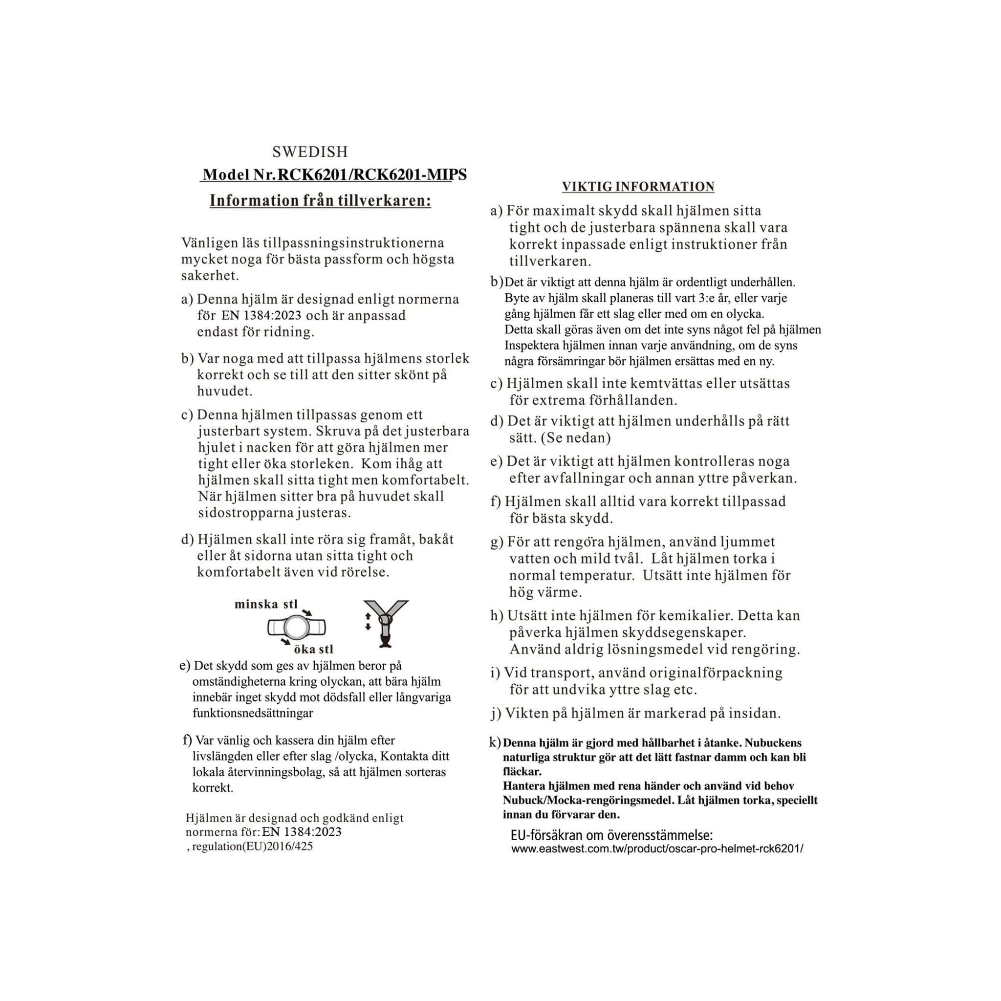- GODKÄND ENLIGT STANDARD CE EN1384-2023