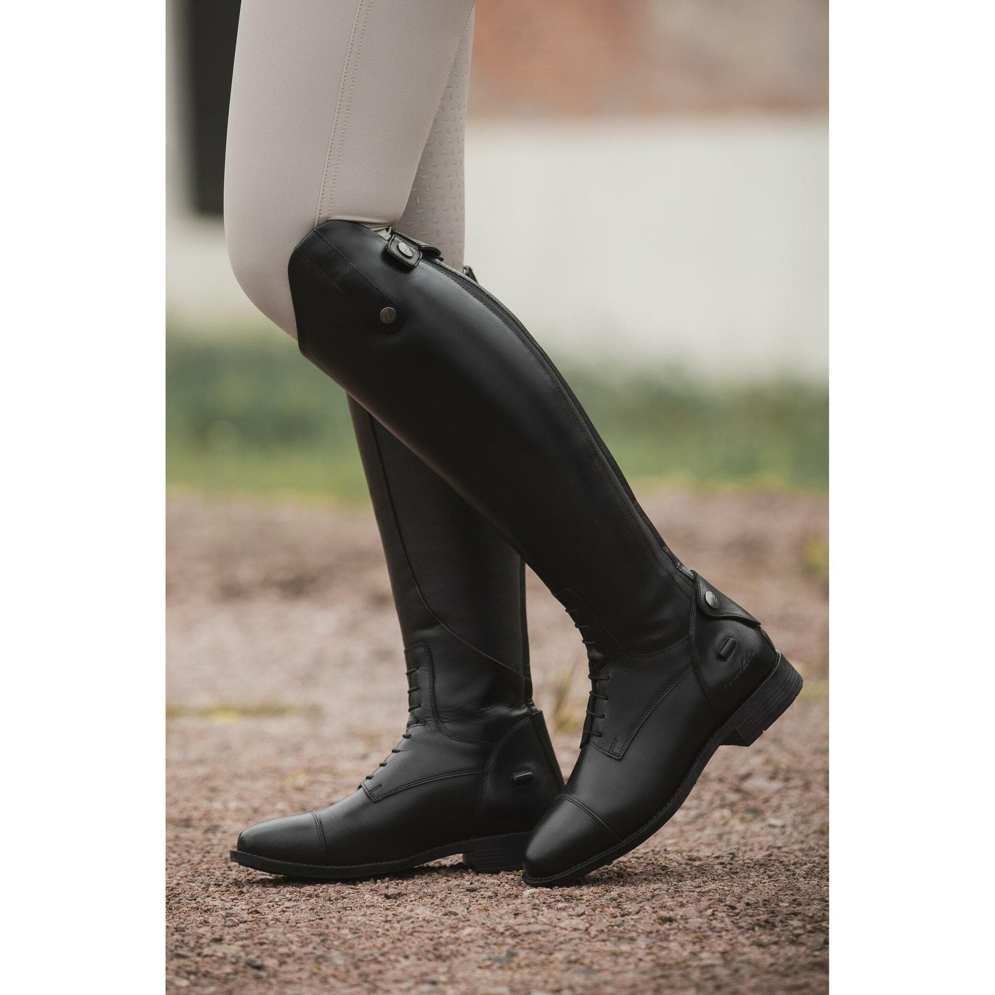 - Stilren och funktionell läderridstövel, designad för både träning och tävling.