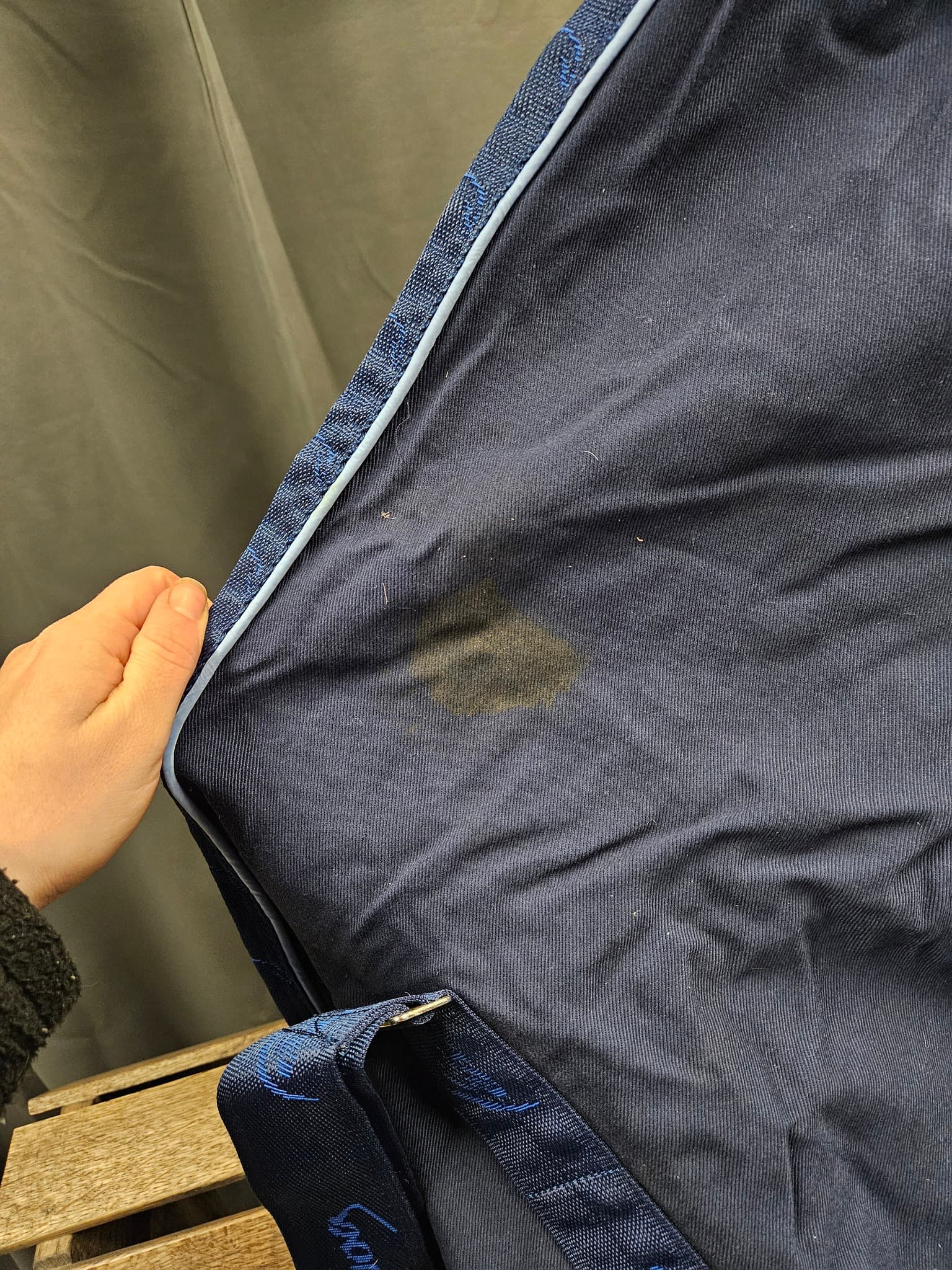 Har lite fläckar baktill på ena sidan.