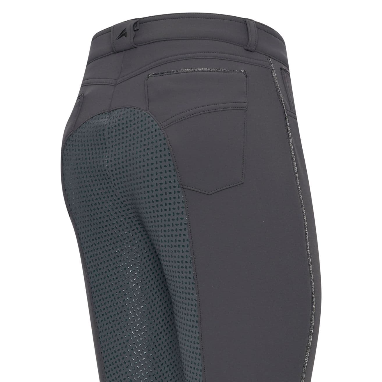 - Den genomtänkta placeringen av bakfickorna och deras strassutsmyckningar skapar ett attraktivt utseende – inte bara i sadeln!
