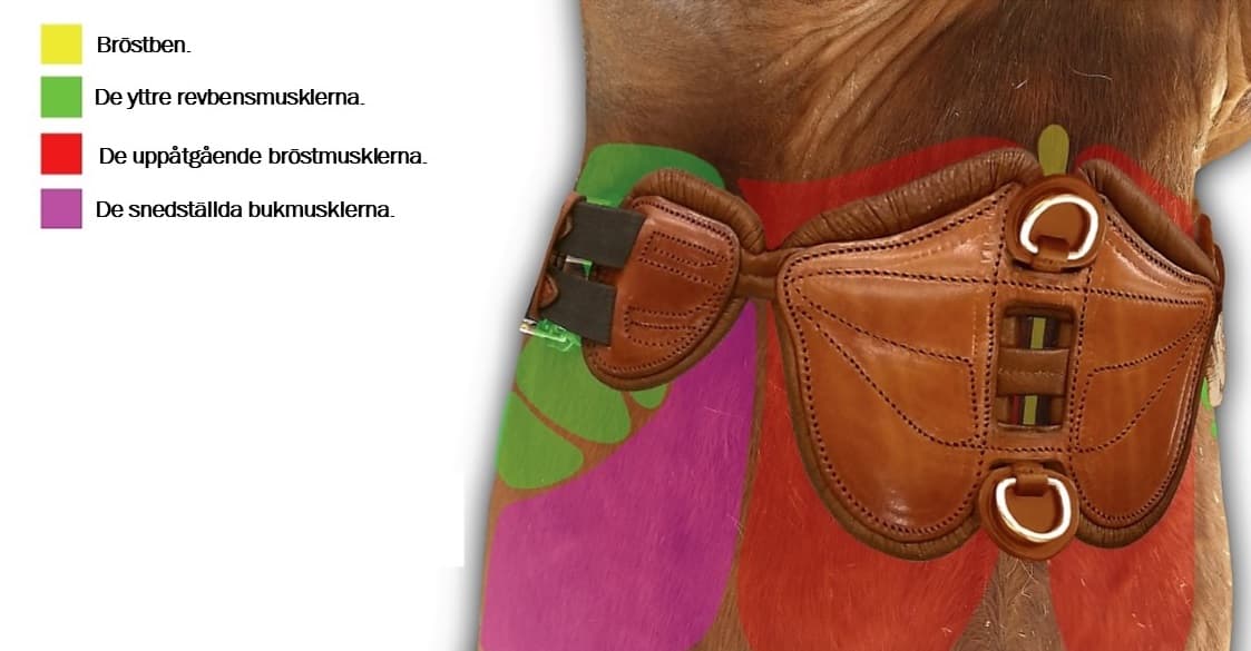 - Den är konstruerad så att varje enkel del på gjorden arbetar samman med de specifika muskelgrupperna på hästen bröstkorg.